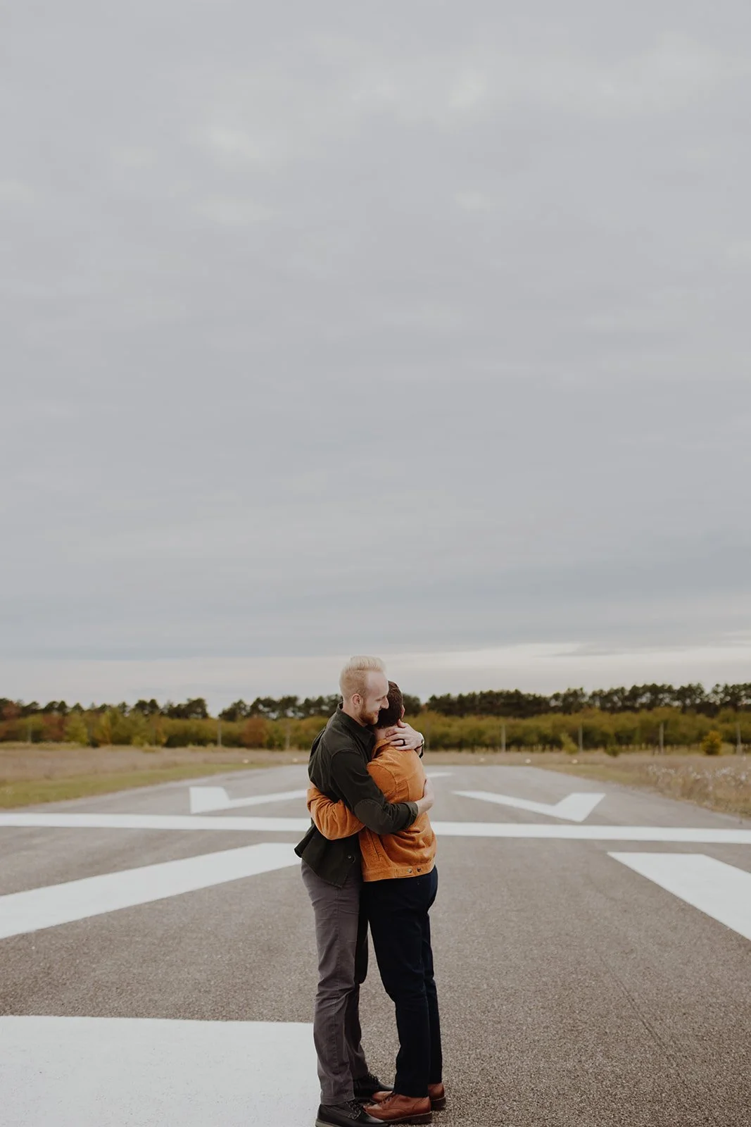 OCTOBER 2025Some love stories just feel like an adventure — the kind that makes your heart race and your soul feel wide open. Stephan and Kyle’s engagement session was exactly that kind of story — a day filled with wind, moody skies, and laughter, beginning at a quiet Michigan airport and ending among the golden dunes of Sleeping Bear.